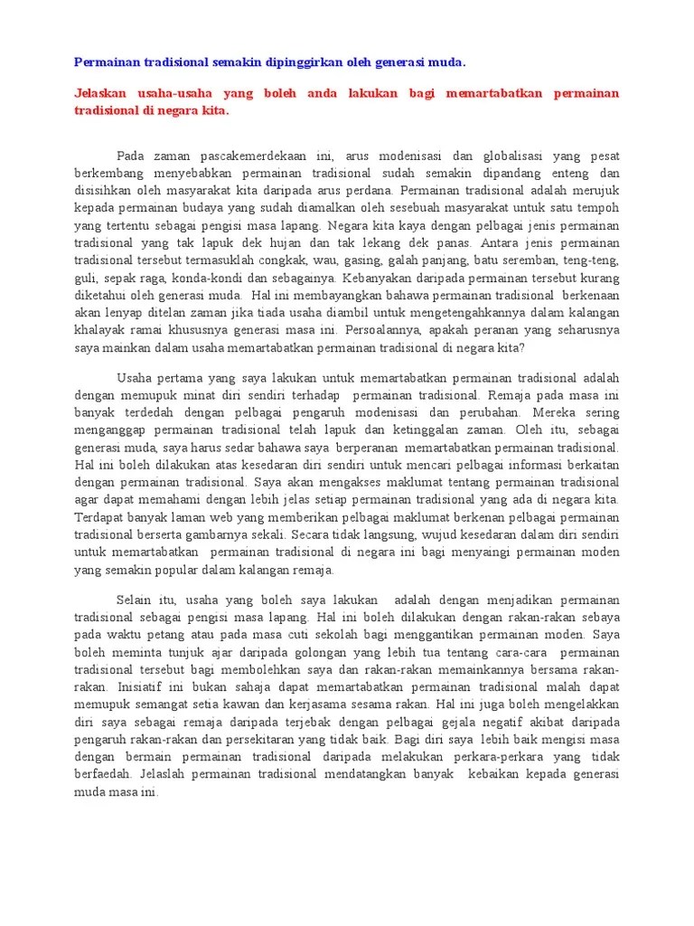 Contoh karangan cemerlang pentingnya untuk terus popularkan permainan tradisional kepada .